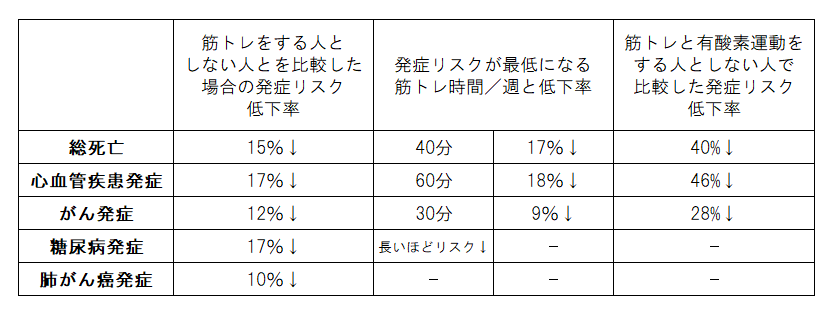 筋トレと病気の発症リスクとの関係